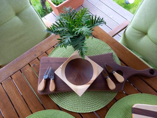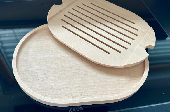 Zusätzlich bieten wir die Option von eingefrästen Intarsien, die gezielt in das Holz eingearbeitet werden. So entsteht ein ganz individuelles Design, das Ihre Kreativität widerspiegelt und perfekt für besondere Anlässe geeignet ist. Entdecken Sie die Vielfalt und Qualität unserer handgefertigten Holzprodukte und machen Sie jedes Essen zu einem besonderen Erlebnis!